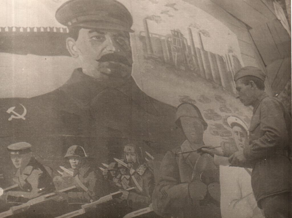 Солдат-художник рисует портрет Сталина. 1943 г.