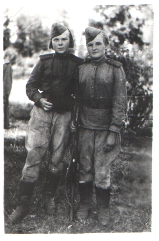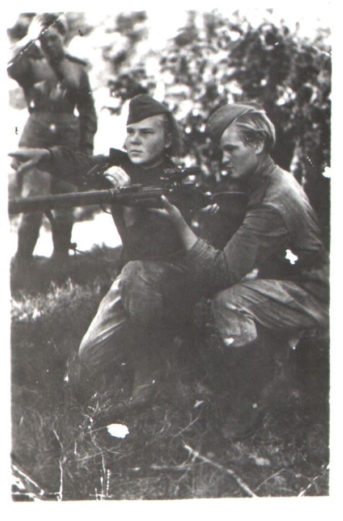 Снайперская пара. Шистерова (Мелкозерова) Валентина Степановна (слева). 1944 г.