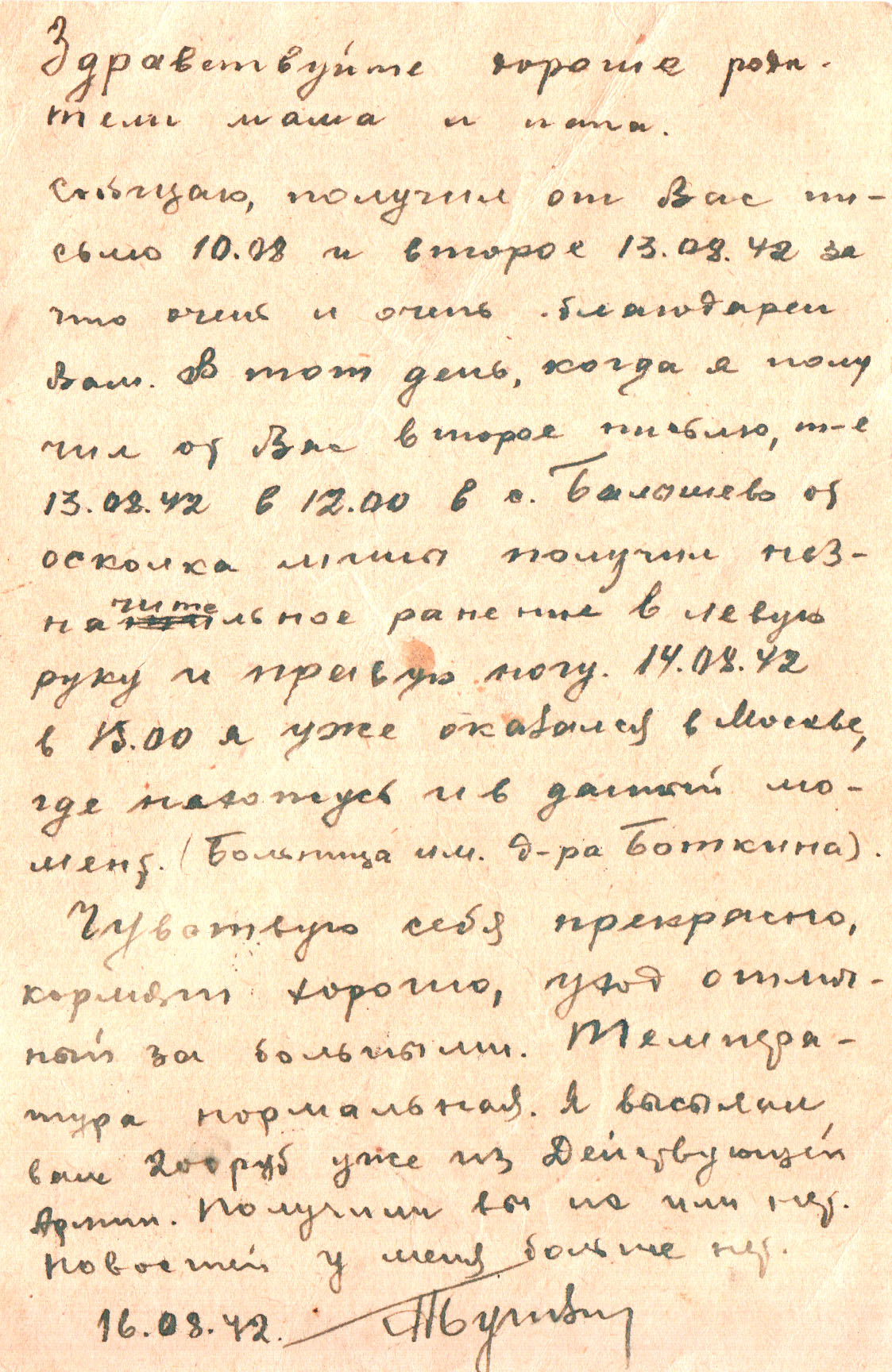 Письмо с фронта М.Я. Бунькова. 12 июня 1942 года.