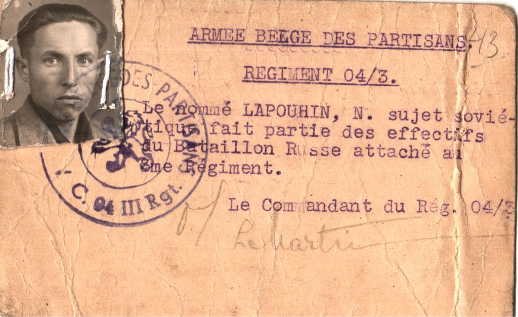 Удостоверение члена бельгийского партизанского отряда Лопухина Н. П. 1944-1945 гг.