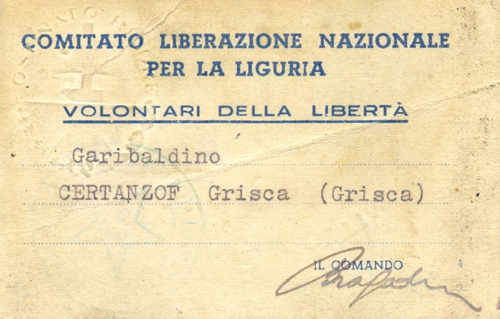 Удостоверение члена итальянского партизанского отряда им. Гарибальди Чердынцева Г. Н. 1944 г.