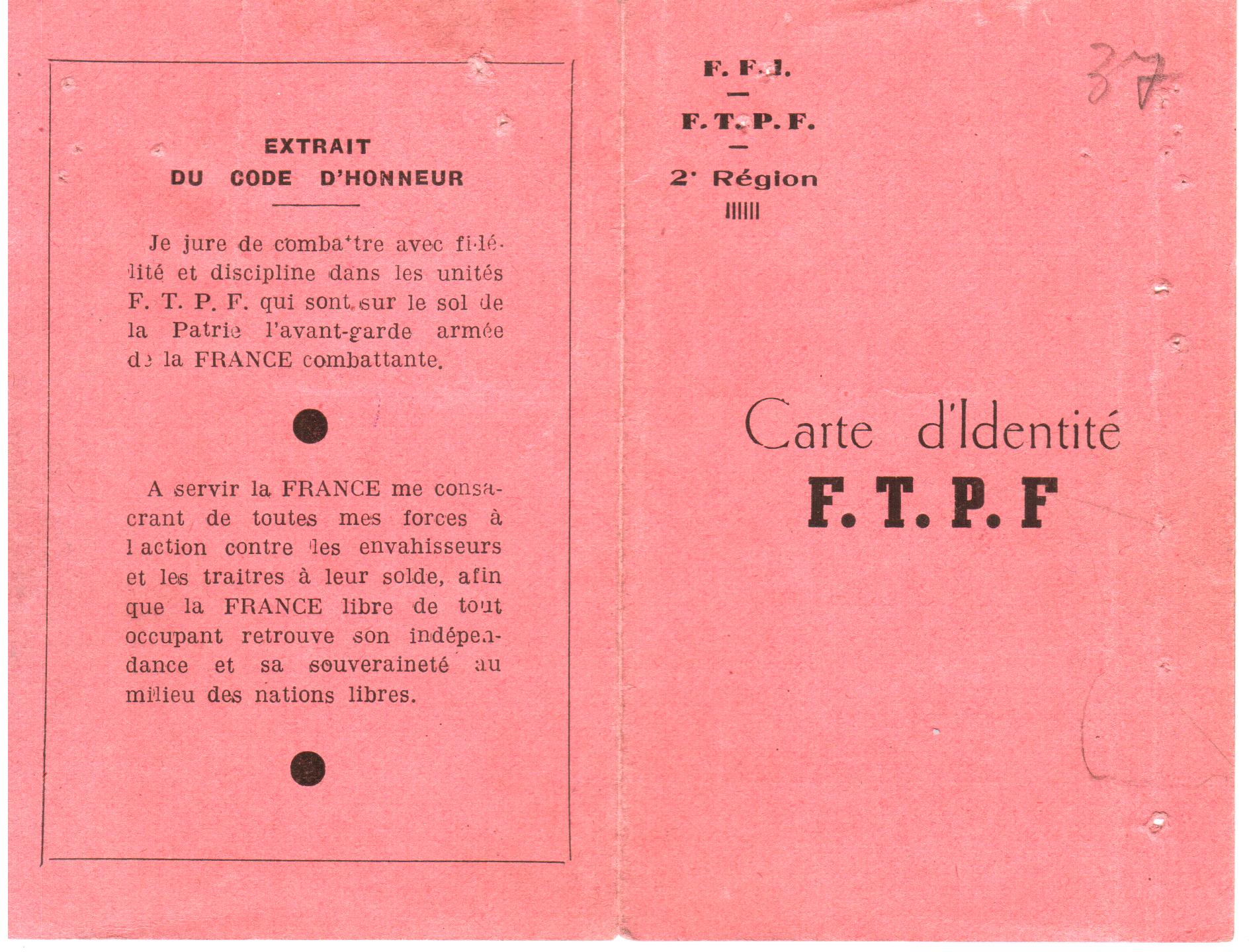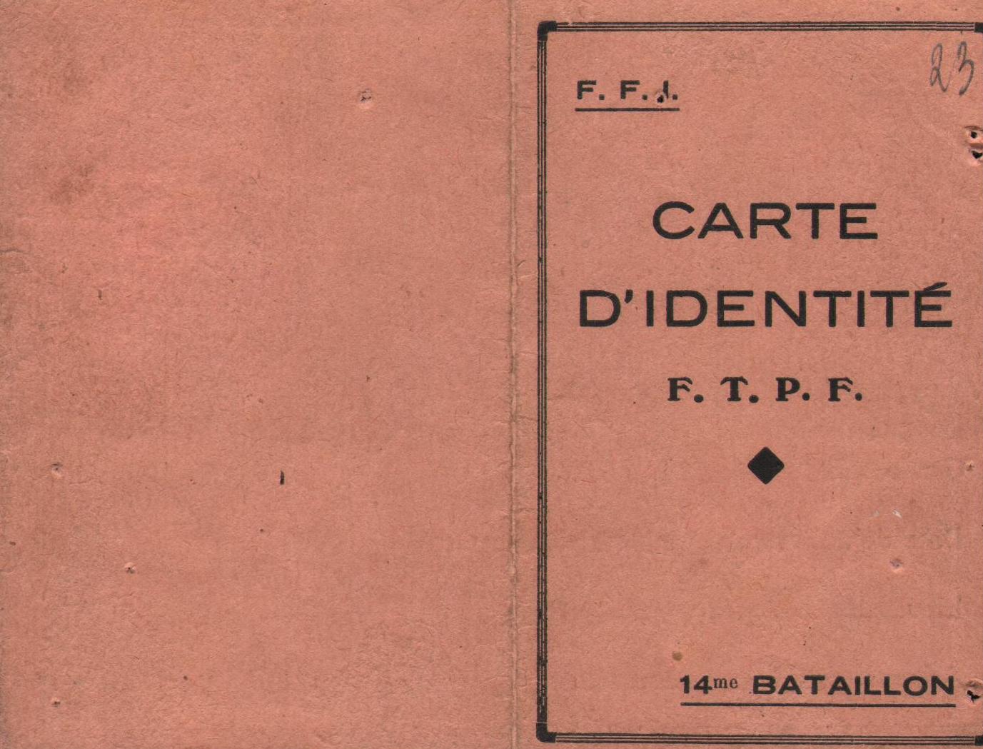 Удостоверение члена французского партизанского отряда Павла Митрофановича Тютина. 1944 год.