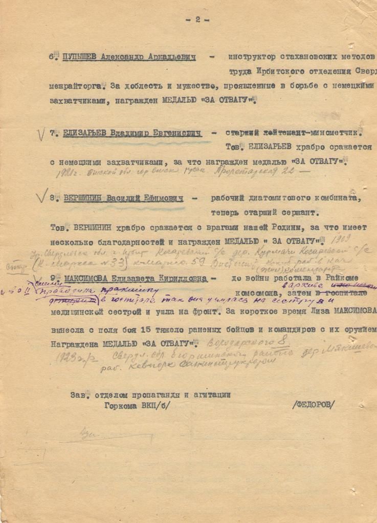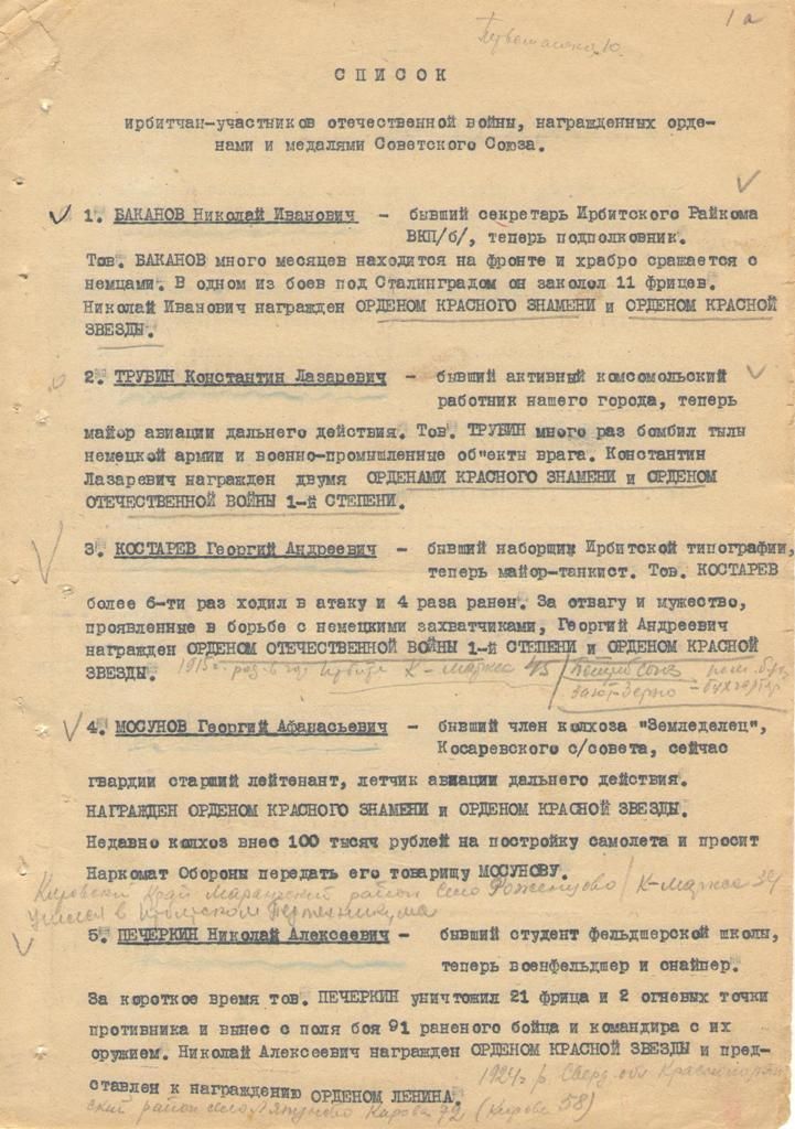 Список ирбитчан – участников Отечественной войны, награжденных орденами и медалями Советского союза.