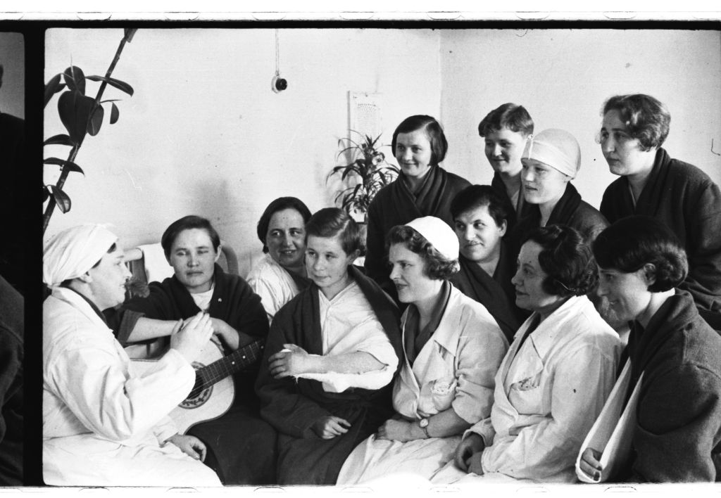 Начальник госпиталя Распопина с группой раненых. г. Свердловск. Фото М.А. Инсарова.