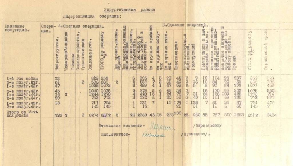 Сведения о проведенных операциях за период Великой Отечественной войны 1941-1945 гг. в госпитале № 1715.