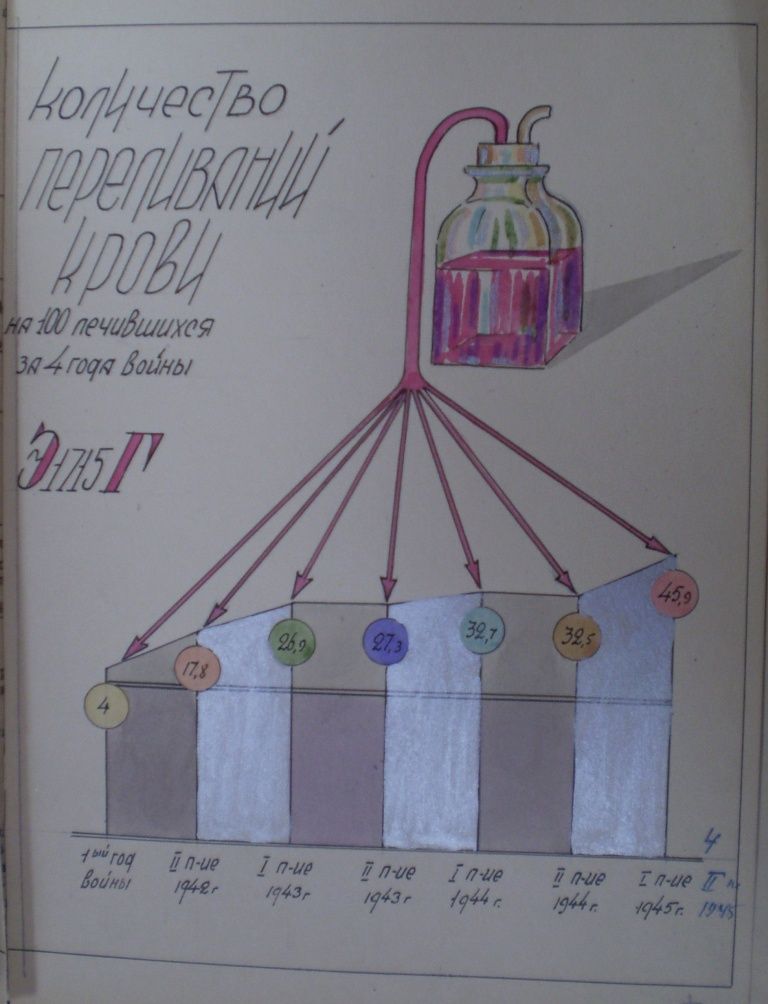 Диаграмма количества переливаний крови эвакогоспиталя № 1715 за 4 года войны.