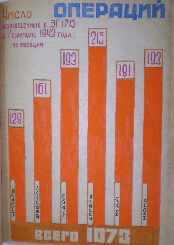 Диаграмма количества операций в эвакогоспитале № 1715 за 1-е полугодие 1943 г.