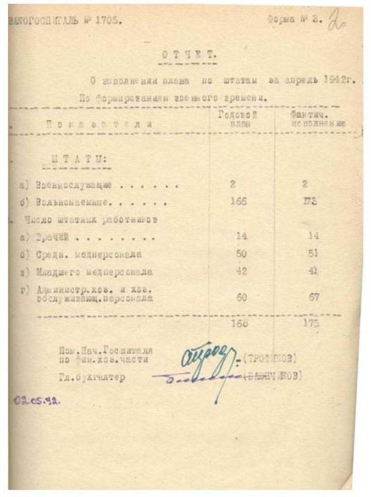 Отчет о выполнении плана по штатам за апрель 1942 г.