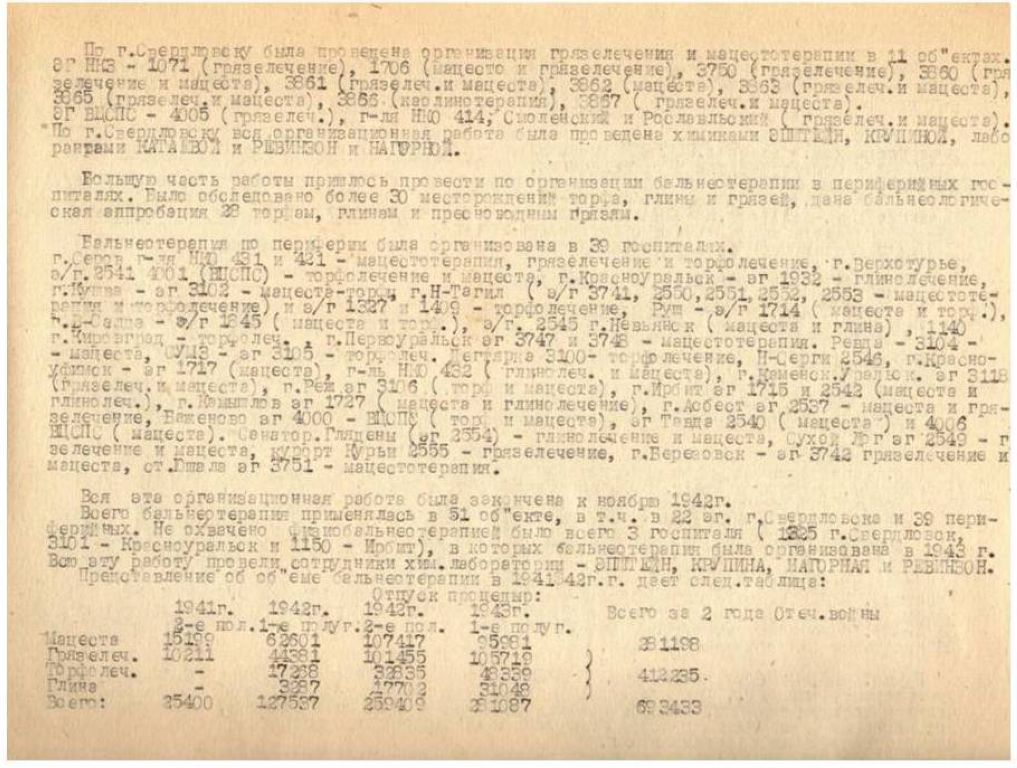 Бальнеотерапия по периферии была организована в 39 госпиталях.
