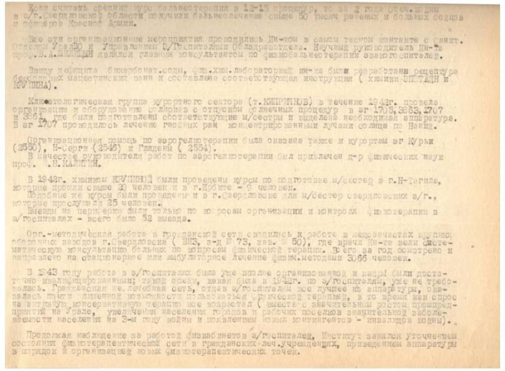 Отчет о работе Свердловского Областного Тубинститута за 1944 г.