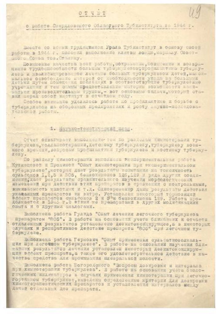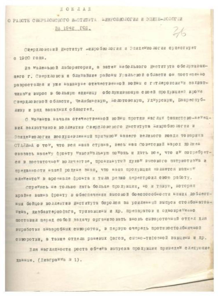 Доклад о работе Свердловского института микробиологии и эпидемиологии.