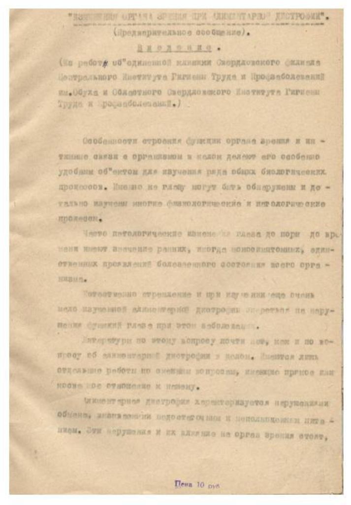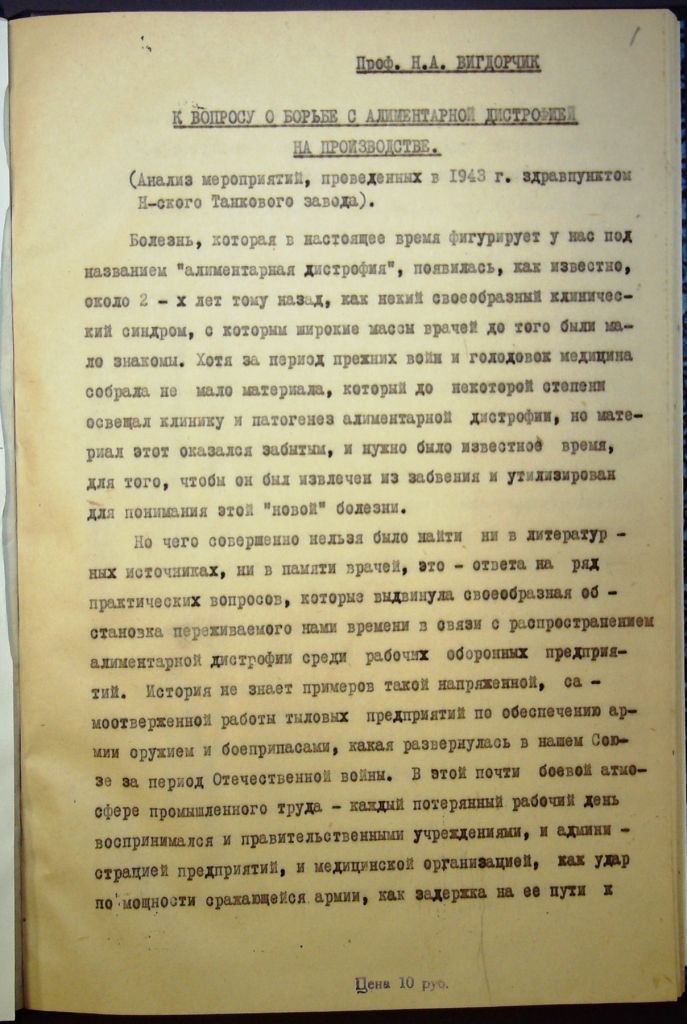 Алиментарная дистрофия с точки зрения профессиональной патологии и экспертизы трудоспособности.