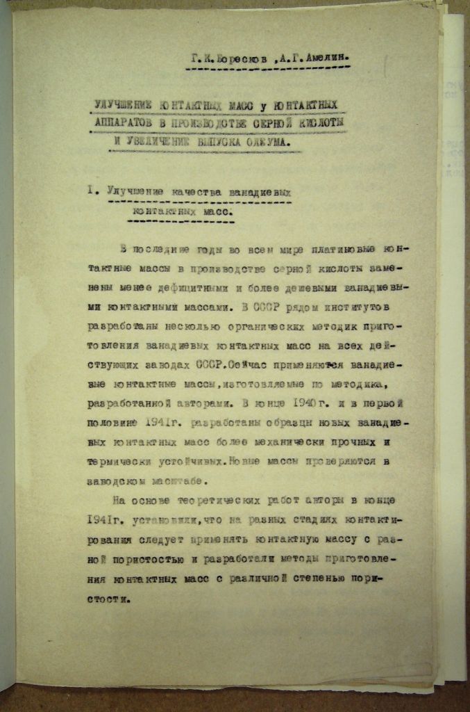 Улучшение контактных масс у контактных аппаратов в производстве серной кислоты и увеличение выпуска олеума.