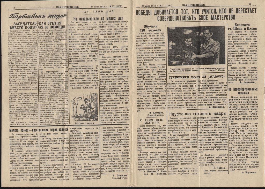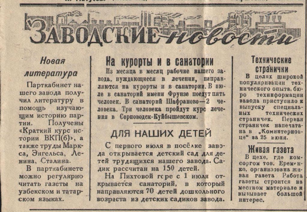 Газета «Коминтерновец» (г. Нижний Тагил). Завод № 183 Народного Комиссариата Тяжелой промышленности (ныне Уралвагонзавод). 27 июня 1943 года.
